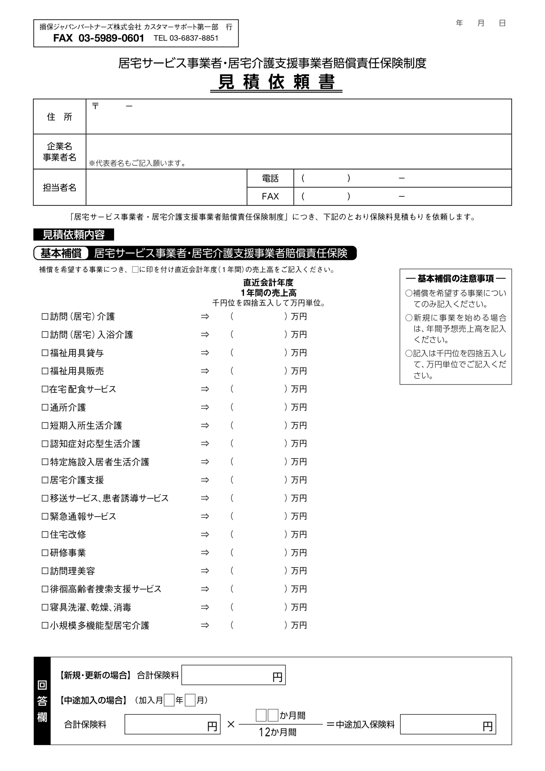 事前に保険料を確認されたい場合は、下記まで 「見積依頼書」をFAX送信してください。