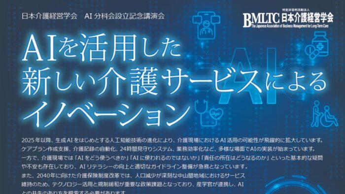 日本介護経営学会が、AI分科会設立の記念講演会「AIを活用した新しい介護サービスによるイノベーション」を4/25(土)にリアル&オンライン形式で開催します。